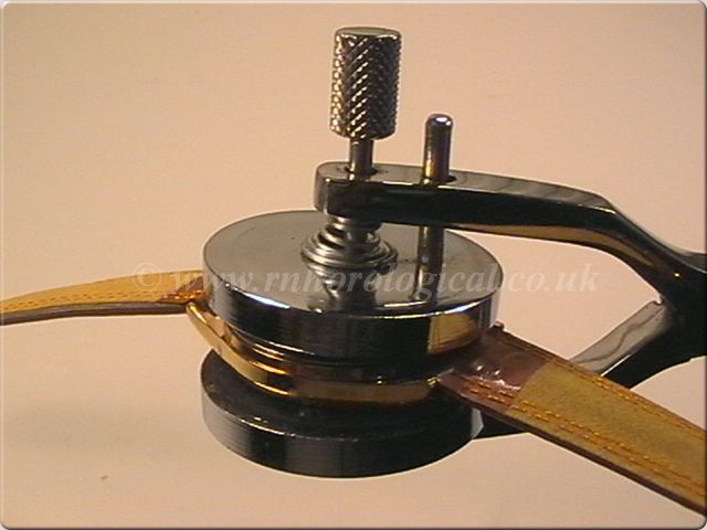 Screw type case back press with assorted nylon dies